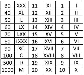 حروف من الألفباء الرومانية استخدمت لتقوم مقام الأرقام حتى القرن التاسع للميلاد, حين استعيض عنها بالأرقام العربية. وهي تصطنع اليوم في صناعة الساعات وفي رؤوس فصول الكتب ولأغراض التصنيف والتبويب.