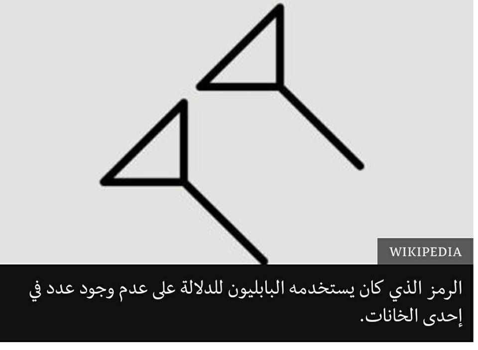 وقد كان البابليون يرمزون للصفر بسهمين صغيرين مائلين.