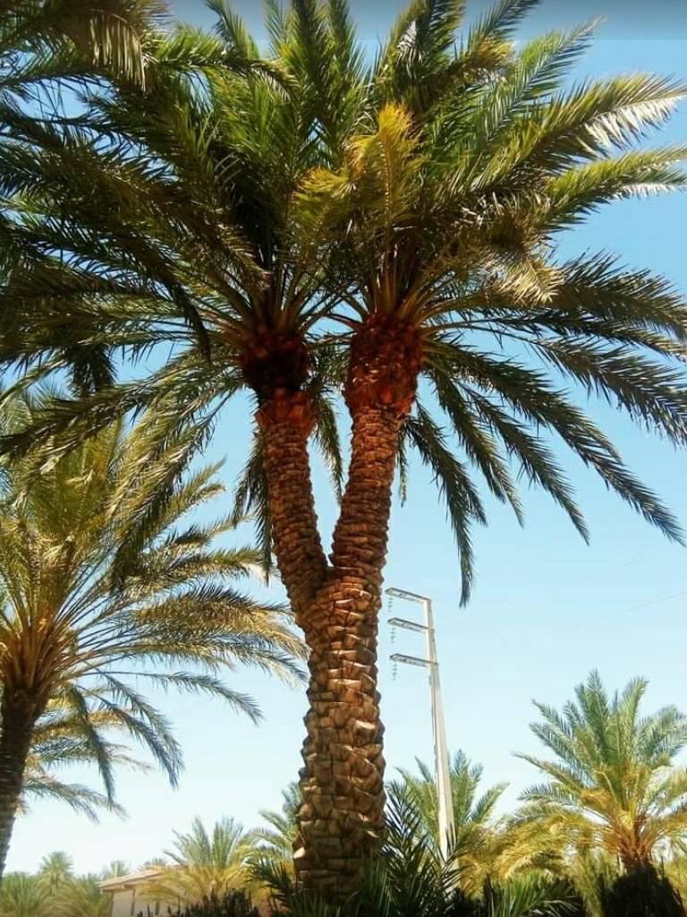 يصل طول جذع النخلة في بعض الاصناف الى (28) مترا وعن طريق الجذع يصعد الماء والغذاء من منطقة الجذور الى القمة النامية.