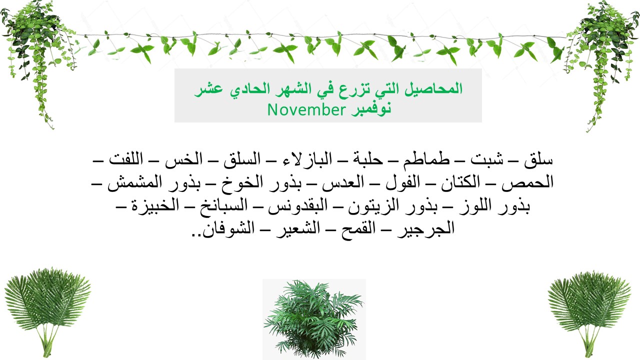 المحاصيل التي تزرع في الشهر الحادي عشر (نوفمبر November)