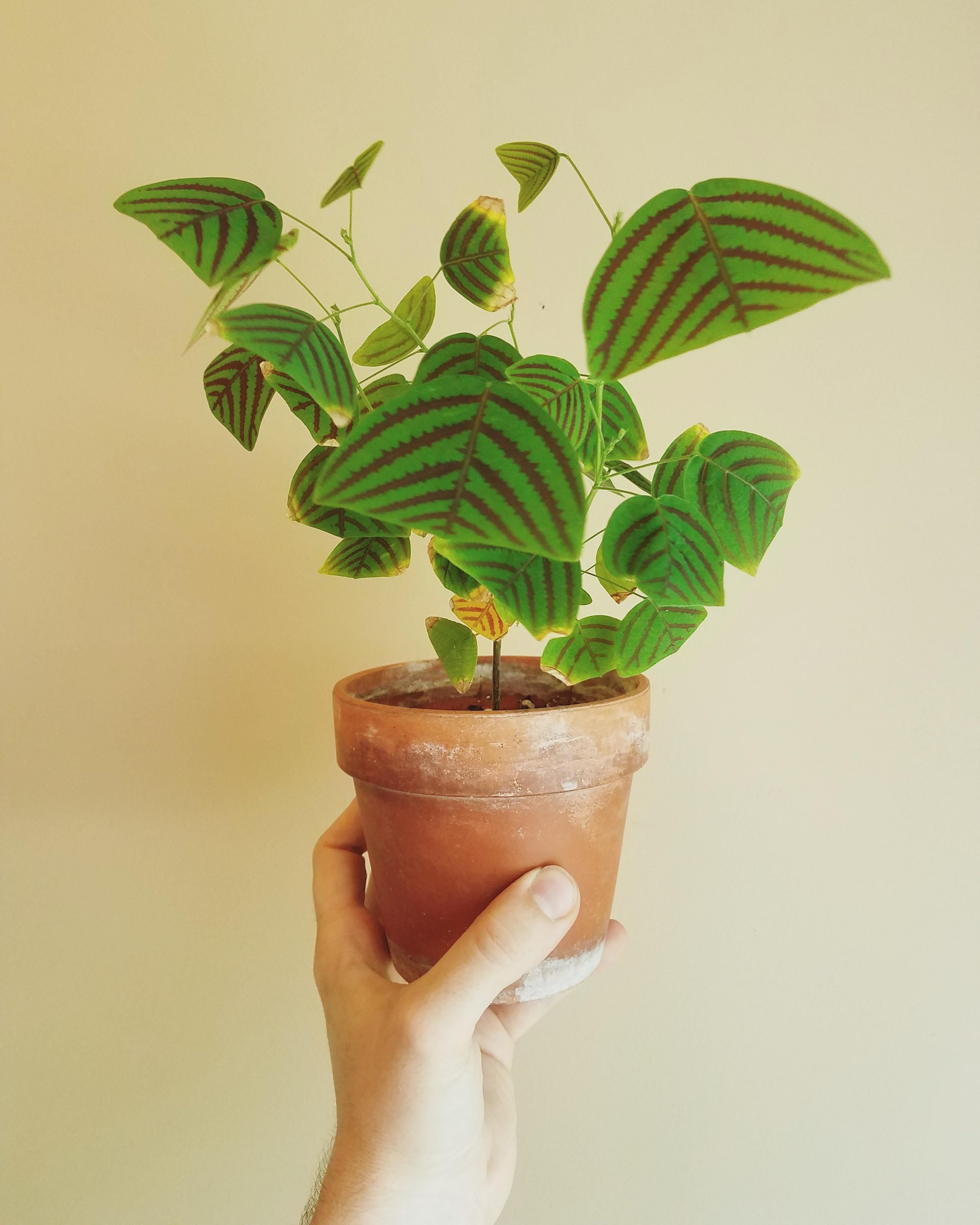 نبتة عشبية دائمة الخضرة تعد من النباتات الوقية التي تقتنى لجمال اوراقها المبرقشة بلون بنفسجي على شكل جناحي فراشة، ولو ان البعض يسميها نبتة ذيل السنونو. النبتة مناسبة كنبات داخلي وهي في شكلها وكذلك في ترتيب الأوراق تشبه نبتة المرانتا.