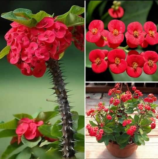 شوكة المسيح او تاج الملك (Euphorbia milii) موطنها مدغشقر، نبات شجيري عصاري يتبع العائلة Euphorbiaceae يصل طوله الى 1.8 متر والاغصان مليئة بالاشواك، والاوراق بسيطة طولها 3.5 سم خضراء اللون والازهار المشهورة حمراء ويوجد منها وردية وبيضاء وصفراء، تظهر على القمة طرفية للنبات ويحتوي على مادة لبنية سامة عند قطع السيقان ويجب عدم تعريضها للجلد او ملامستها للعين، الثمار كبسولة تنفجر عند نضجها وتتناثر البذور
