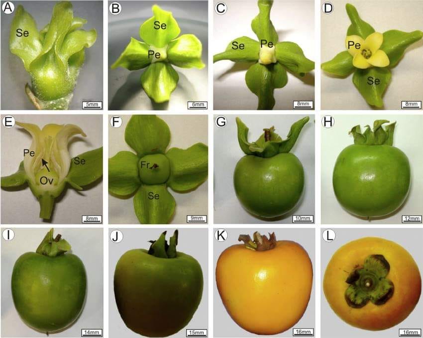مراحل تطور الأزهار والثمار في فاكهة الكاكي (خرما او خرمالو)
