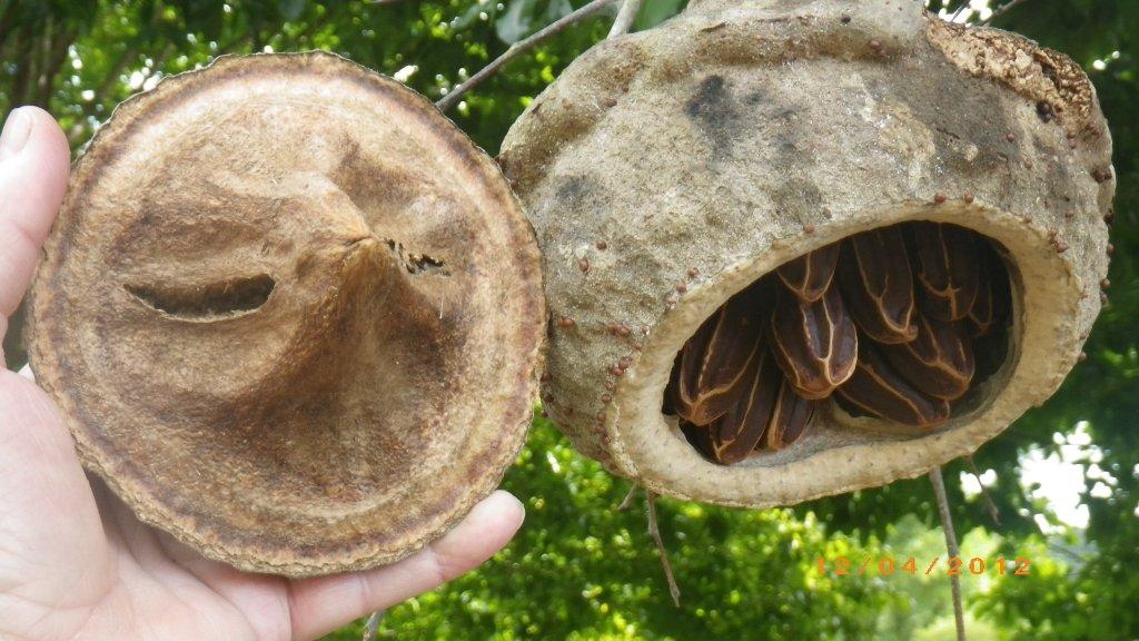 شجرة كبيرة يصل ارتفاعها 50م، مستديمة الخضرة ذات اوراق بسيطة، الازهار بيضاء توجد على قمة الحامل الزهري، والثمرة لها غلاف خشبي يتساقط عندما يكتمل حجم الثمرة، طول البندقة 5 سم. الموطن الاصلي لها فنزولا والبرازيل وجويانا.