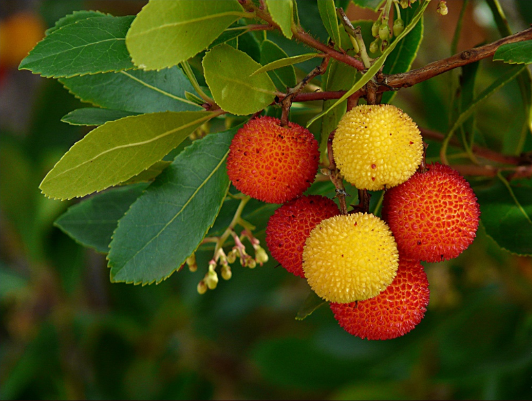 شجيرة مستديمة الخضرة ارتفاعها 3-4,5 م, الموطن الاصلي لها جنوب أوربا وتزرع من جنوب ايرلندا الى منطقة البحر الابيض المتوسط. تزهر في الشتاء والربيع بينما ثمار العام السابق مازالت موجودة عليها، ثمارها تشبه ثمار الفراولة في حجمها وشكلها.
