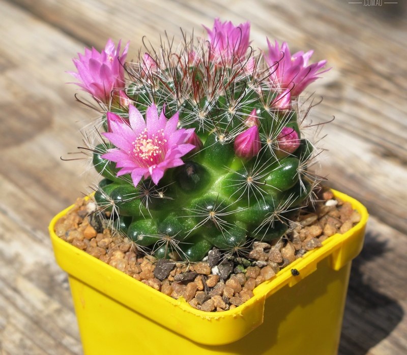 نبات عصاري ذو شكل كروي بطيء النمو مغطى بأشواك لونها فضي يعطي النبات ازهارا صفراء او حمراء اللون ويتكاثر بالخلفات الناتجة من النبات اذ تفصل وتزرع لوحدها مباشرة.