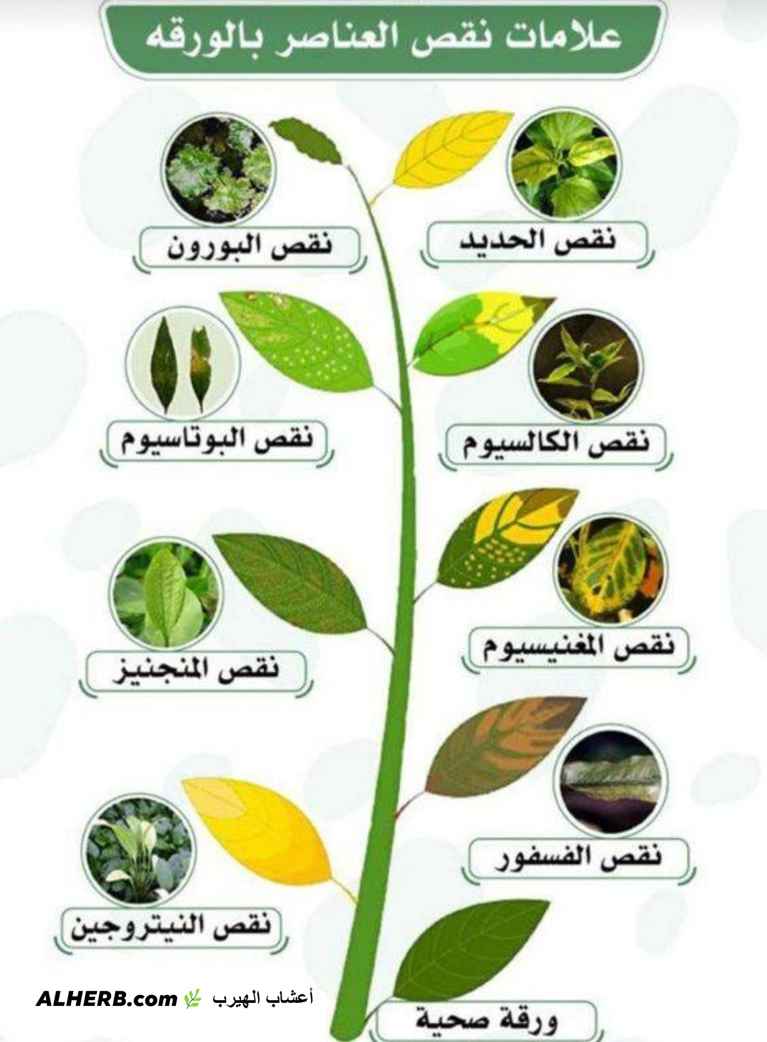 علامات نقص العناصر بالورقة النباتية