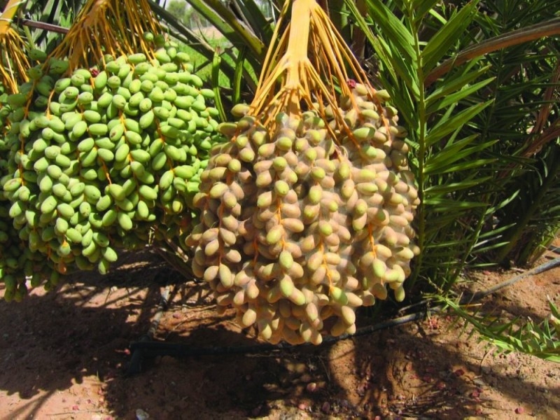 تقوم يرقات وحوريات والاطوار الكاملة لهذا الحيوان (الحلم) بامتصاص العصارة النباتية من الثمار بادئة بالقرب من قمع الثمرة, مما يسبب عدم اكتمال نمو ونضج الثمار, ويتحول لونها الى البني المحمر وتتشقق في عدة اماكن ويصبح ملمسها خشنا وتغطى بنسيج يفرزه الحلم تلتصق به ذرات الغبار والتراب ويظهر شكل الثمار مغبرا, وتشتد الاصابة في المناطق الجافة وعلى اشجار النخيل المجاورة للطرق الترابية.