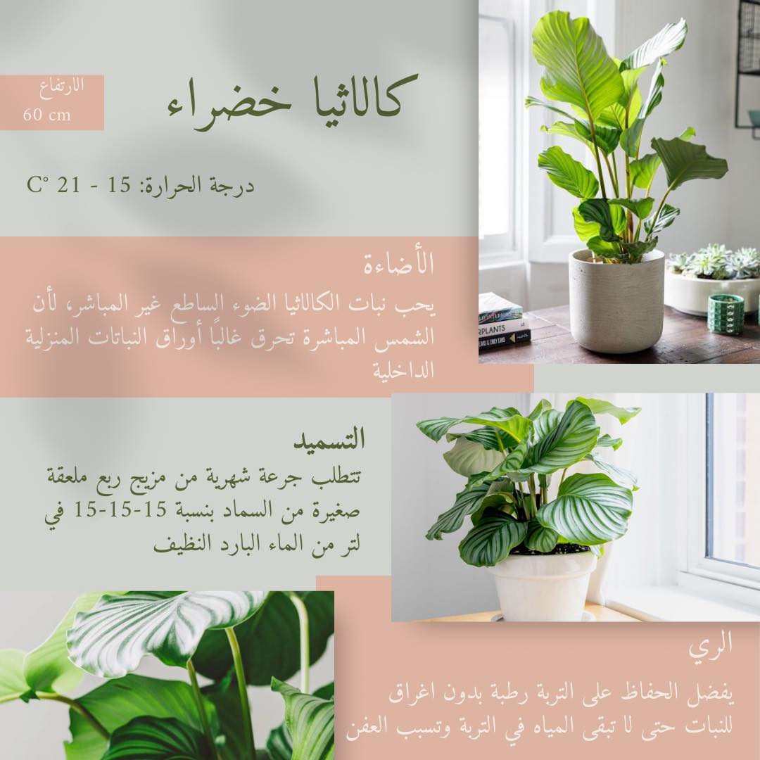 الاحتياجات البيئية والغذائية لنبات الكالاثيا الخضراء