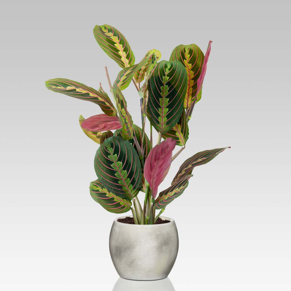 نبات عشبي داخلي معمر، أوراقه بيضوية الشكل تحوي على بقع بنفسجية او بنية اللون بين العروق ويكون لون الجزء الخارجي لكل ورقة أخضر فاتح وبالاقتراب من مركز الورقة يكون لونه أخضر داكن، ويوجد وسط كل ورقة مقطع غير منتظم ذو لون أحمر مائل للخضرة؛ في الليل تصبح أوراق المارانتا مطوية الى الاعلى مثل الأيدي المرفوعة أثناء الصلاة ولذلك يطلق عليها نبات المصلى، النبات عادة لا ينتج ازهارا في العراق، لكنه ان أنتج فهي…
