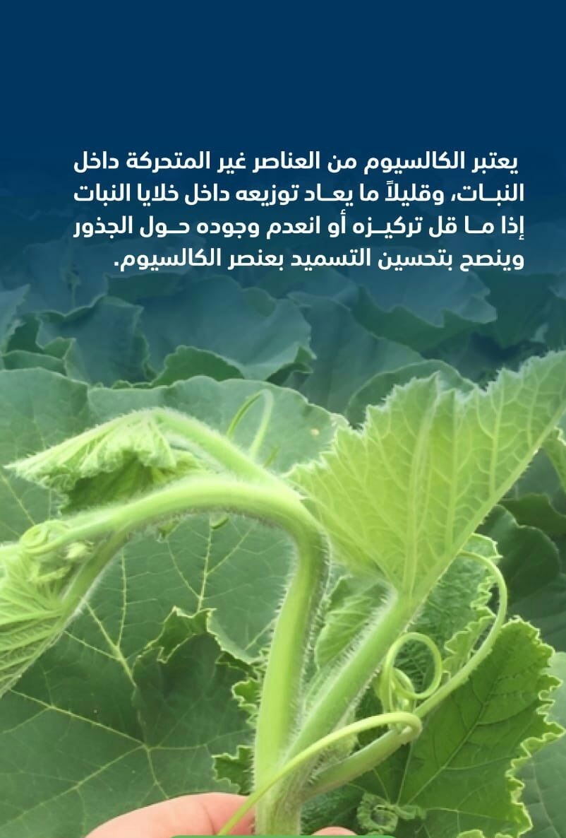 يعتبر الكالسيوم من العناصر غير المتحركة داخل النبات، وقليلا ما يعاد توزيعه داخل خلايا النبات اذا ما قل تركيزه او انعدم وجوده حول الجذور وينصح بتحسين التسميد بعنصر الكالسيوم.