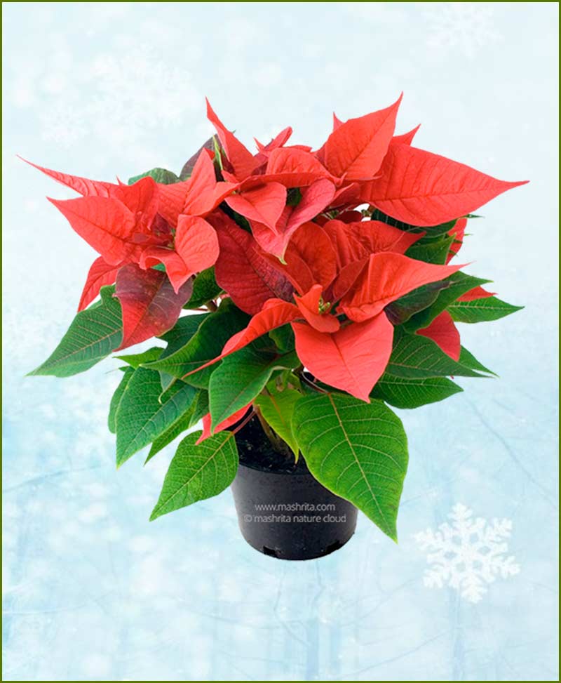 وهو نبات مزهر في الشتاء ويستعمل في فترة اعياد الميلاد، القنابات كبيرة الحجم لونها احمر او ابيض او اصفر او وردي تحيط بالأزهار الصغيرة الصفراء، والاوراق لونها اخضر داكن ومن الممكن ان نحصل على نبات صغير وذلك من خلال تربية النبات في سنادين صغيرة، يحتوي كل منها على 3-5 عقل وتعامل ببعض منظمات النمو، وبعد الزراعة يجرى تطويش (إزالة القمم النامية) النباتات لزيادة عدد الافرع لذلك تزهر النباتات وهي صغيرة او قزمية...