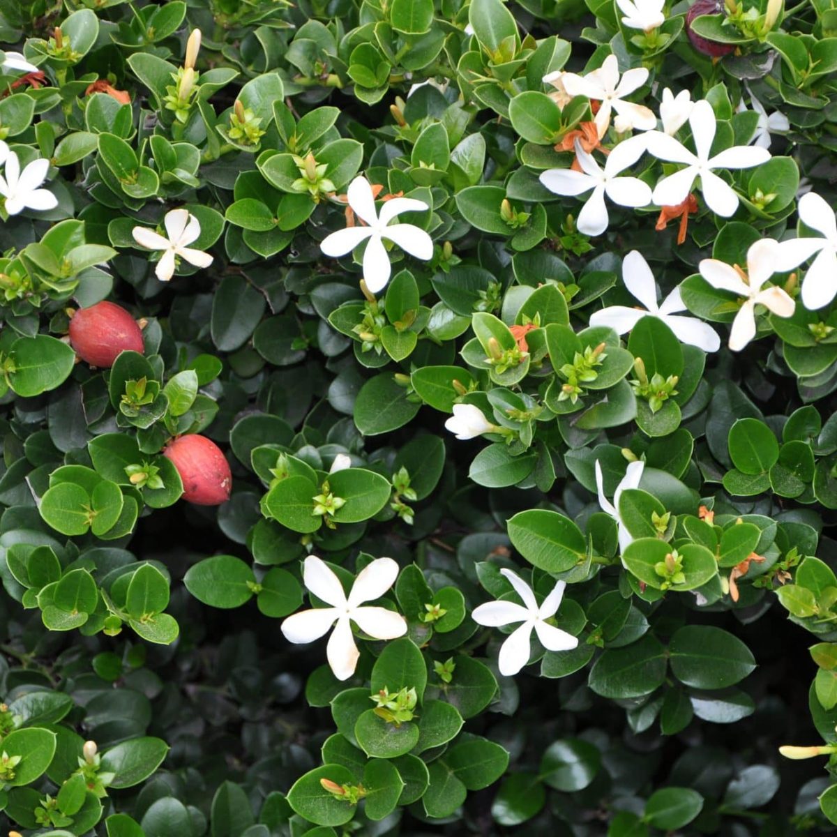له أنواع عديدة قد تصل الى أكثر من 20 نوعاً، عبارة عن شجيرة جميلة دائمة الخضرة تنمو في الشمس وينجح نموها في الظل مع قلة في الازهار لها أوراق متقابلة خضراء داكنة دائرية جميلة ذات ملمس ناعم ويحتوي النبات على اشواك حادة، ازهاره بيضاء اللون ذات خمس بتلات لها رائحة زكية، وهو يزهر خلال فصل الصيف، يمكن استخدامه كسياج أو سور نباتي لكونه قابل للتقليم والتشكيل، حيث ينمو إلى ارتفاع 2 متر.