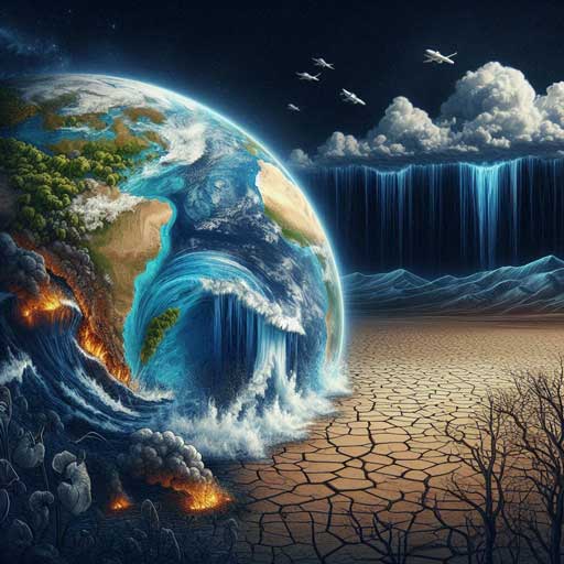 ـ ارتفاع درجة حرارة الأرض بسبب انبعاثات ثاني أكسيد الكربون الناتجة عن حرق الوقود الأحفوري.