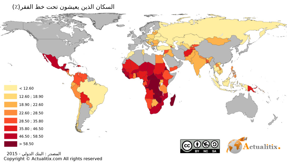 خط الفقر الدولي: هو عبارة عن النسبة المئوية للسكان الذين يقل دخل الفرد منهم عن دولار امريكي واحد في اليوم، وبحسب مقياس آخر دولارين في اليوم , ويعد هذا المؤشر مقياساً لنسبة السكان الذين لا يتمكنون من توفير الاحتياجات الاساسية لأسرهم, كما يساعد في المقارنة بين الدول في مجال تخفيض عدد الافراد الذين يعيشون في فقر مدقع , وفي اواخر التسعينيات قدر عدد الذين يعيشون على دولار واحد في العالم بنحو 3,1 مليار نسمة.