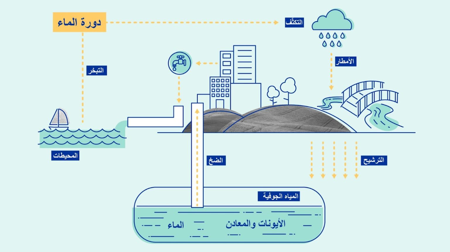 المياه السطحية : يُشير مصطلح المياه السطحية إلى أي مسطح مائي موجود فوق سطح الأرض، بما في ذلك الجداول والأنهار والبحيرات والأراضي الرطبة والخزانات والينابيع، إضافةً إلى البحار والمحيطات التي على الرغم من كونه مياهها مالحة، إلا أنها تعتبر مياهاً سطحية، ويعمل هطول الأمطار وجريان المياه على تغذية هذه المسطحات المائية، أما من ناحية أخرى، فيؤدي تبخر المياه وتسربها إلى الأرض إلى فقدان نسب المسطحات المائية السطحية.