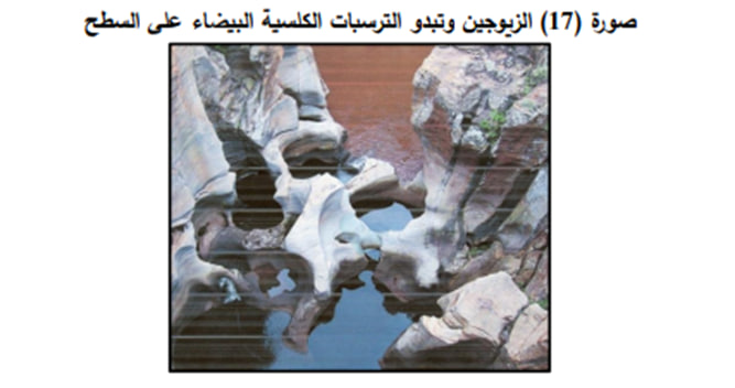 الزيوجين: تتطور في الصحاري المدارية الجافة، عندما يتواجد صخور كلسية تتميز بكثافة الفواصل فيها تتخير الرياح مناطق الضعف الصخري وتتوغل فيها كتجوية فيزيائية وتعمل على تكوين فجوات فيها كبداية لتكوين الزيوجين ثم تتسع ويكبر حجمها لتشكل قنوات غائرة وفجوات مع وجود حافات صخرية فيها. وتبرز فوق سطح الأرض بارتفاعات تتجاوز 7 متر وتغطيها أحياناً طبقة رقيقة من الترسبات الكلسية تطورت بفعل التجوية الكيميائية لإذابة التكوينات الكلسية لتكون طبقة رقيقة تحمي الصخور المتبقية.