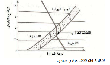 الانقلاب الحراري الجبهوي : يختلف ارتفاع هذا الانقلاب عن سطح الأرض باختلاف عمق الجبهة الهوائية وارتفاعها عن سطح الأرض. يرافق هذا النوع من الانقلاب الجبهة الهوائية الباردة, حيث يندس الهواء البارد أسفل الهواء الدافئ ويرفعه إلى الأعلى مكوناً انقلاباً حرارياً في الجبهة نفسها حيث تفصل الجبهة في مثل هذه الأحوال بين الهواء البارد في الأسفل والهواء الدافئ في الأعلى وقد يكون رطباً فتظهر فيه الغيوم .
