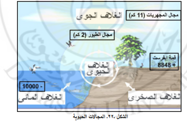 يُعرف المجال الحيوي بأنه النطاق السطحي من الأرض سواء يابس أو ماء، والغلاف الجوي المتاخم لهذا النطاق السطحي، حيث تعيش فيه الكائنات الحية، ويمتد من الطبقة السفلى للغلاف الجوي بما يقدر بنحو ۱۳ كم، ويتركز معظم الأحياء قرب سطح الأرض بما لا يتعدى ۷۰ متراً، وبعدها يبدأ عدد الأحياء بالتناقص كلما ازداد الارتفاع، على الرغم من أن هناك عدداً قليلاً من الطيور يُحلق على ارتفاعات عالية مثل النسر الأمريكي (Condor)، الذي يستطيع الطيران على ارتفاع ۷كم. وفي الوسط المائي يقتصر انتشار النباتات في المياه العالية .