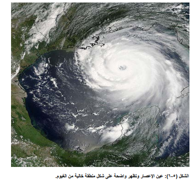عين الإعصار:ـ وهي منطقه هواء خفيف وهبوط هواء وخاليه من الغيوم .