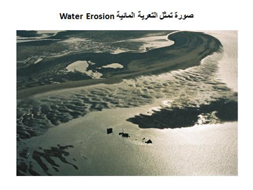 التعرية Erosion هي عملية تحريك وإزالة التربة أو بعضها من موقعها الأصلي الى موقع اخر بواسطة الماء وتتم خلال فترة زمنية وهي على اشكال متباينة نظرا لاختلاف نوع الترب وموقعها .