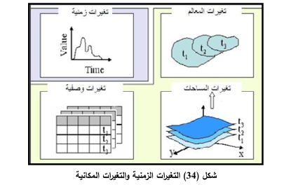 هي تلك البيانات المكانية الخاصة بالأجسام والظواهر الجغرافية التي تتغير في فترة زمنية قصيرة والتغيرات المكانية قد تحصل في خصائص من زمن الى زمن آخر ويستخدم طرق حسابية عدة للكشف عن التغيرات ما بين الطبقات .