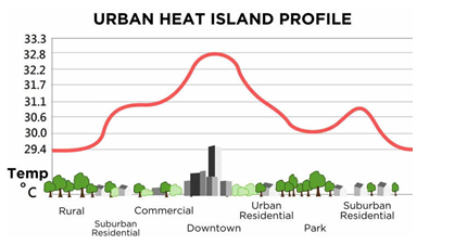 مناخ الجزيرة الحرارية : تعد الجزيرة الحرارية ظاهرة مناخية اوجدها الانسان نتيجة تغييره لنمط استخدامات الارض داخل المد من خلال اقتلاعه لمساحات واسعة من الاشجار والاراضي الزراعية واستبدالها باحياء سكنية مبنية من الخرسانة المسلحة وبالشوارع الاسفلتية وارصفتها ، بجانب مواقف السيارات والمطارات الدولية والمحلية ، وارصفة الموانئ في المدن الساحلية ، كلها مجتمعة ادت الى ظهور الفروق الحرارية بين اوساط المدن واريافها المحيطه بها .