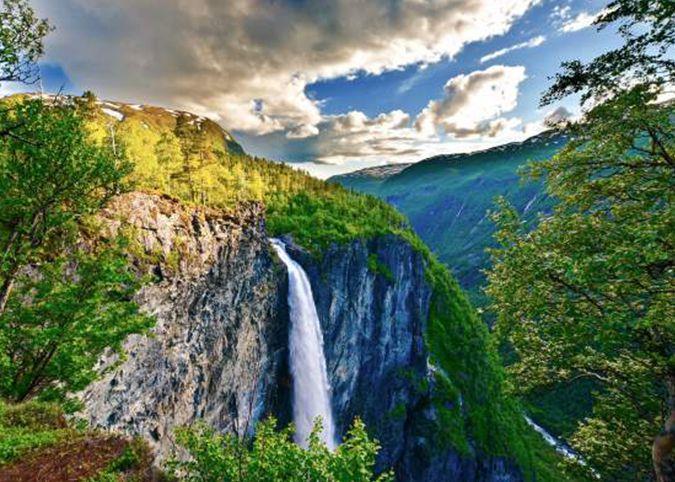 تعد من أضخم الشلالات الموجودة في النرويج وتتميز بشكلها الساحر الجميل ويصل مساحتها 279 مترًا، والمميز فيها أن المياه تتساقط بحرية في وادي لوتر برونين ، بينما تراقبه جبال الألب السويسرية الرائعة والمميزة.