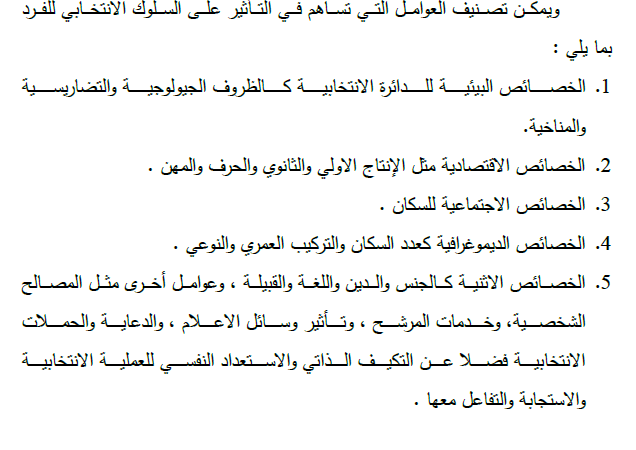 العوامل التي تساهم في التاثير على السلوك الانتخابي للفرد