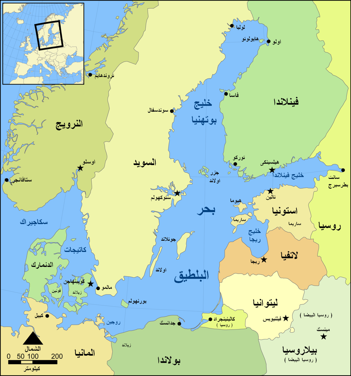 بحر البلطيق: هو أحد البحار الواقعة في الجهة الشماليّة من قارّة أوروبا، ويحيط به كل من أوروبا الشرقيّة، وأوروبا الوسطى، وأوروبا الشمالية، وشبه الجزيرة الإسكندنافية، والجزر الدنماركية.