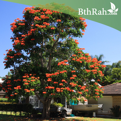 1- شجرة التوليب الافريقية من الأشجار الجميلة التي تزهر بألوان جذابة باللون الأحمر الداكن.