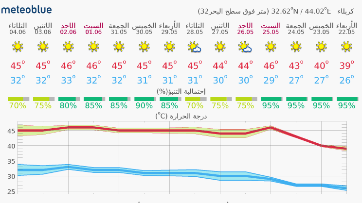 الطقس المتوقع لمدينة كربلاء المقدسة ولمدة 14 يوما
