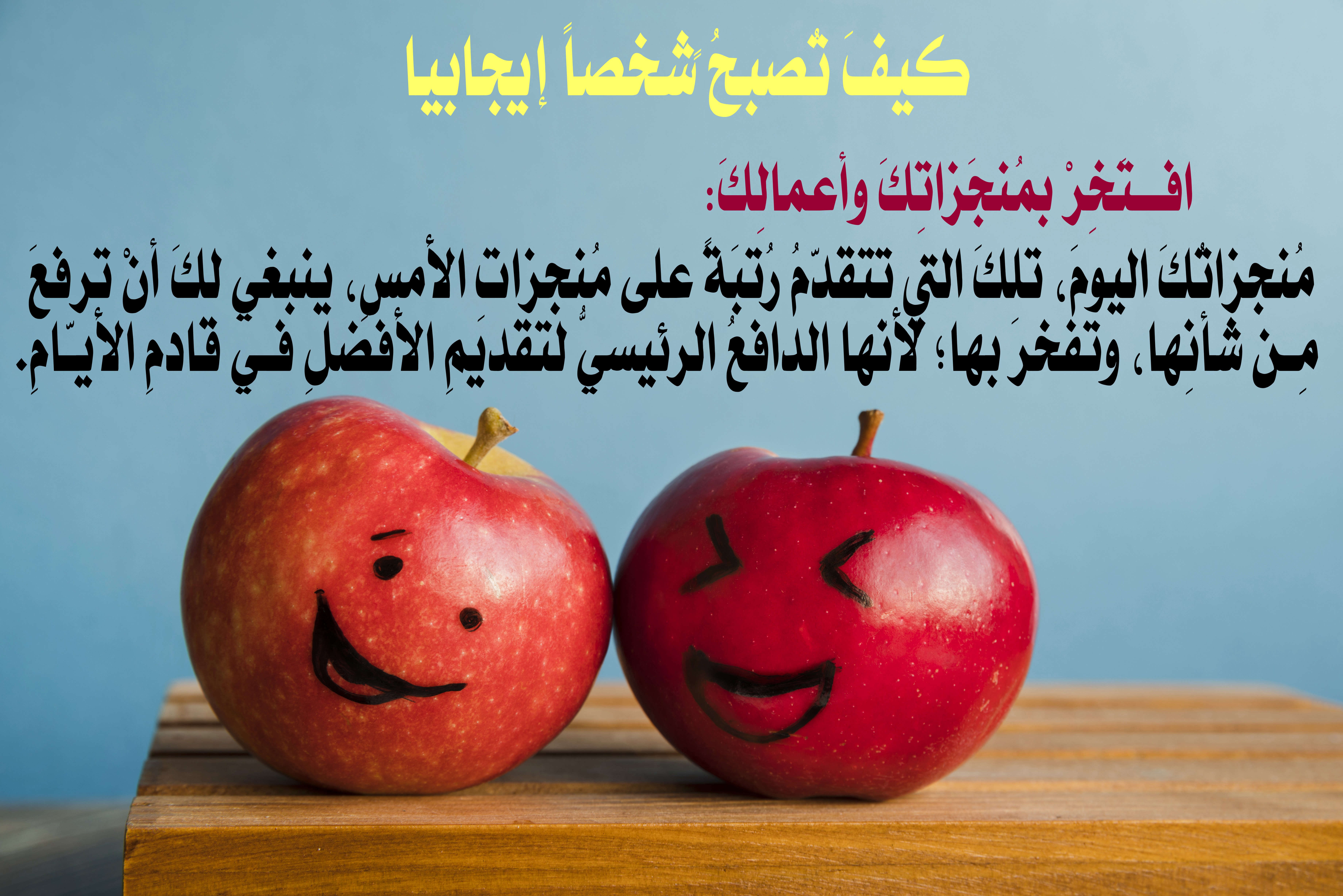 مُنجزاتُكَ اليومَ، تلكَ التي تتقدّمُ رُتبَةً على مُنجزاتِ الأمسِ، ينبغي لكَ أنْ ترفعَ مِن شأنِها، وتفخرَ بها؛ لأنّها الدافعُ الرئيسيُّ لتقديمِ الأفضلِ في قادمِ الأيّامِ.