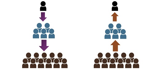 الاتصال النازل: وهو الاتصال الذي يتم بين الادارة العليا واعضاء الادارة الوسطى وبين موظفي الادارة المباشرة او المشرفين وصولا الى العاملين في مستوى التنفيذ وهكذا يتم الاتصال على شكل تعليمات واوامر او توجيهات وسياسات تصدرها الهيئة العليا بغرض تنظيم او توجيه الاعمال.