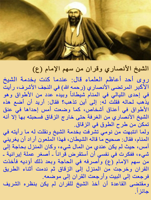 الشيخ الأنصاري وقران من سهم الإمام (ع)