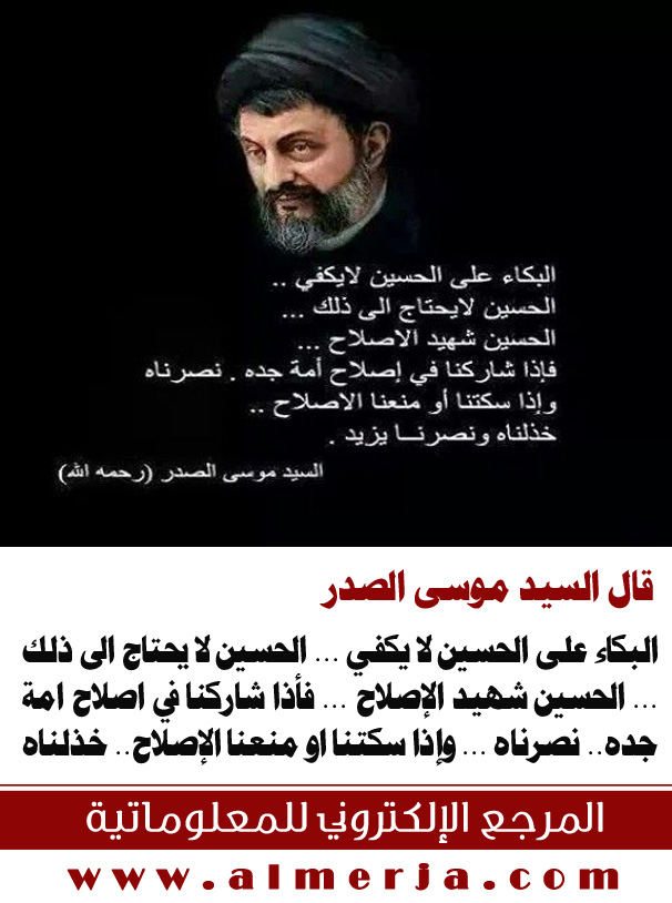 البكاء على الحسين لا يكفي ... الحسين لا يحتاج الى ذلك ... الحسين شهيد الإصلاح ... فأذا شاركنا في اصلاح امة جده.. نصرناه ... وإذا سكتنا او منعنا الإصلاح.. خذلناه ونصرنا.. يزيد.