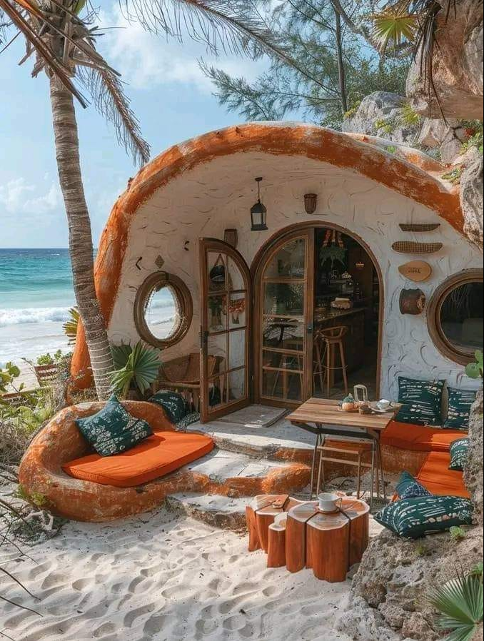 كوخ بحري مع الرمال البيضاء الناعمة في أحدى الشواطيء البحرية