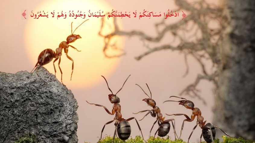 حجم المسؤولية بحجم الخطر ... ونملة سلميان نموذج حي للشعور بالمسؤولية وتوجيه مجتمعها لبر الامان .. فكيف لا يتعض بعضنا بعد الكم الهائل من ارشادات مراجعنا وعلمائنا من خطر فايروس كورونا وبقية الامور الحياتية والمجتمعية .: {قَالَتْ نَمْلَةٌ يَا أَيُّهَا النَّمْلُ ادْخُلُوا مَسَاكِنَكُمْ لَا يَحْطِمَنَّكُمْ سُلَيْمَانُ وَجُنُودُهُ وَهُمْ لَا يَشْعُرُونَ} [النمل: 18].
