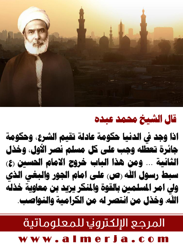 الشيخ محمد عبده (1266هـ – 1323هـ / 1849م – 1905م) مفكر وعالم دين وفقيه وقاضي وكاتب ومجدد إسلامي مصري، يعد أحد دعاة النهضة والإصلاح في العالم العربي والإسلامي ورموز التجديد في الفقه الإسلامي، ساهم بعد التقائه بأستاذه جمال الدين الأفغاني في إنشاء حركة فكرية تجديدية إسلامية في أواخر القرن التاسع عشر وبدايات القرن العشرين تهدف إلى القضاء على الجمود الفكري والحضاري وإعادة إحياء الأمة الإسلامية لتواكب متطلبات العصر.