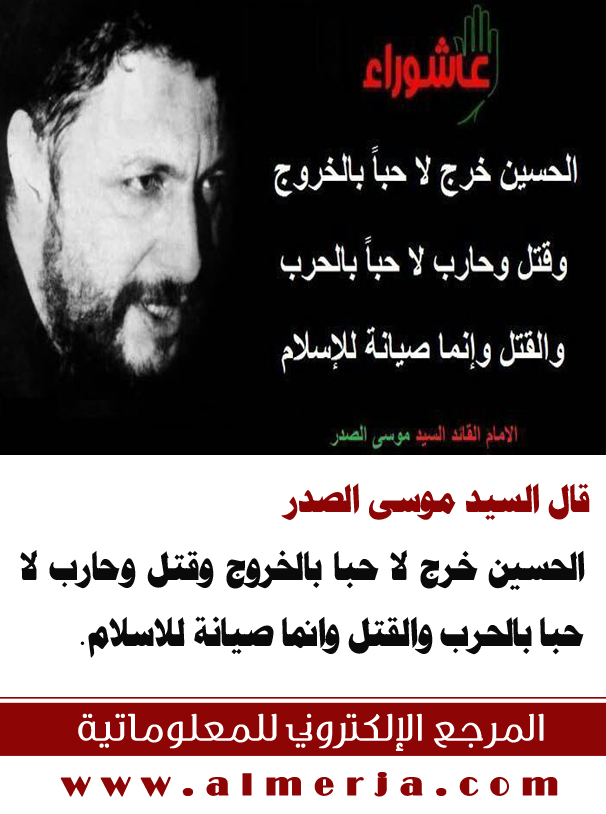 قالوا بالحسين(ع): السيد موسى الصدر (مواليد:4 حزيران 1928)، من العلماء والمفكرين المؤثرين في المجال الثقافي والسياسي، ومؤسس المجلس الإسلامي الشيعي الأعلى وحركة أمل، والذي أصبح قائداً لشيعة لبنان على المستويين السياسي والفكري في 25 آب من سنة 1978 م، قام بجولة على عدد من الرؤساء العرب إثر الاجتياح الإسرائيلي للبنان، حيث وصل مع الشيخ محمد يعقوب والصحافي السيد عباس بدر الدين إلى "طرابلس الغرب" تلبيةً لدعوةٍ رسميةٍ من سلطاتها العليا في ليبيا، وانقطع الاتصال بهم هناك اعتباراً من ظهر 31…