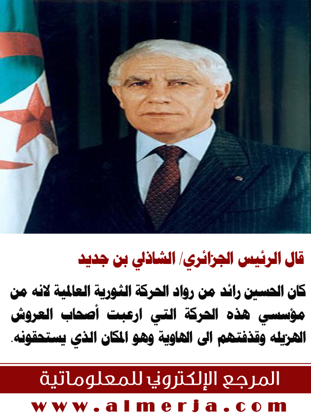 الشاذلي بن جديد (14 أبريل 1929 - 6 أكتوبر 2012) الرئيس الرابع للجزائر منذ التكوين والاستقلال من 9 فبراير/شباط، 1979 وحتى 11 يناير/كانون الثاني 1992.