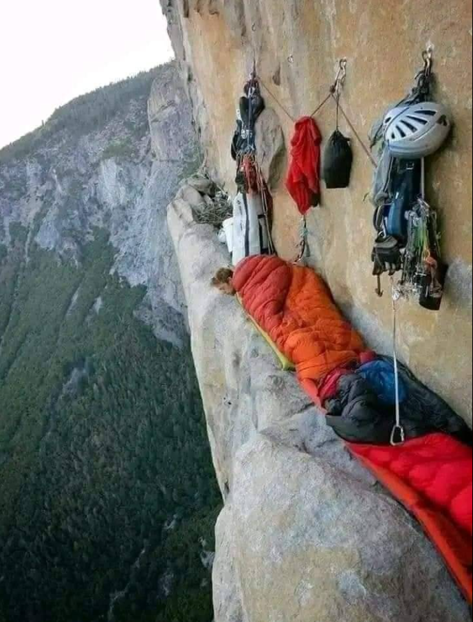 هكذا ينام متسلقي الجبال أثناء صعودهم المرتفعات العالية و التي تستغرق وقت طويل للوصول إلى قمتها.