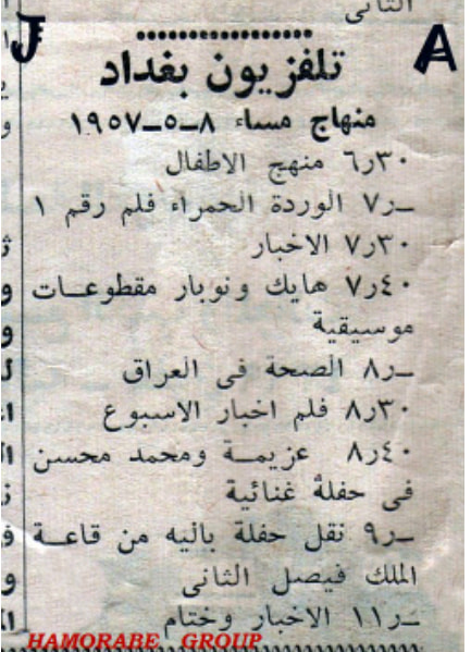 من ارشبف الاعلام العراقي. منهاج تلفزيون بغداد سنة 1957م.