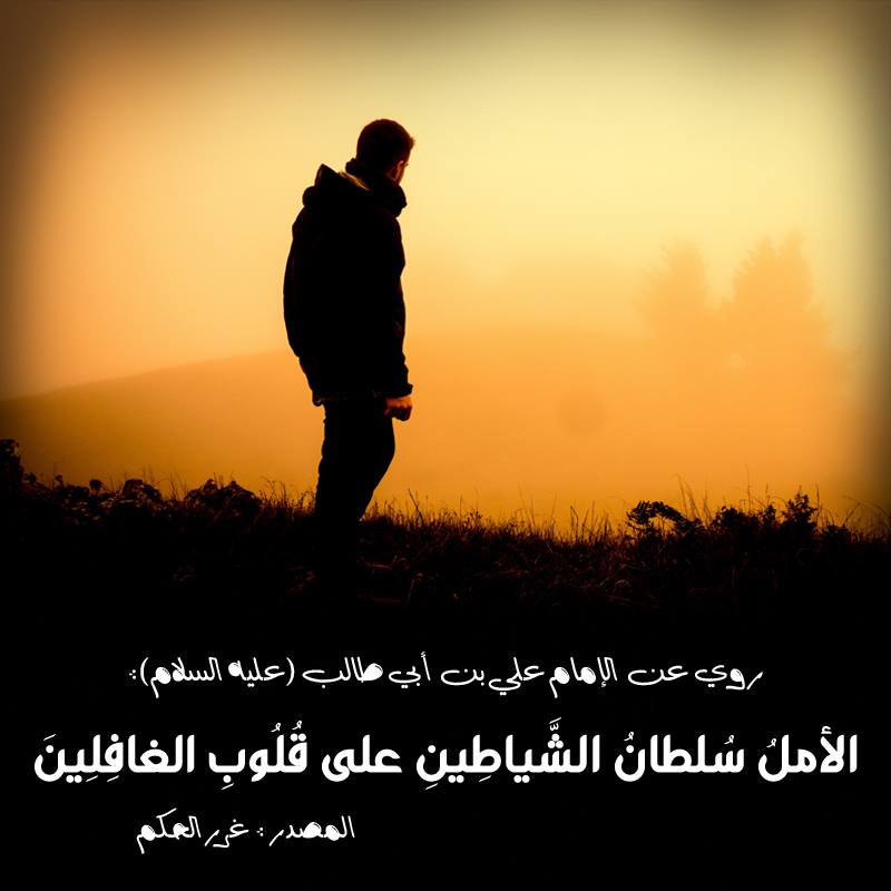 الإمام عَلِيِّ بْنِ أَبِي طَالِبٍ ( عليه السَّلام ) أنهُ قَالَ : الأملُ سُلطانُ الشَّياطِينِ على قُلُوبِ الغافِلِينَ .