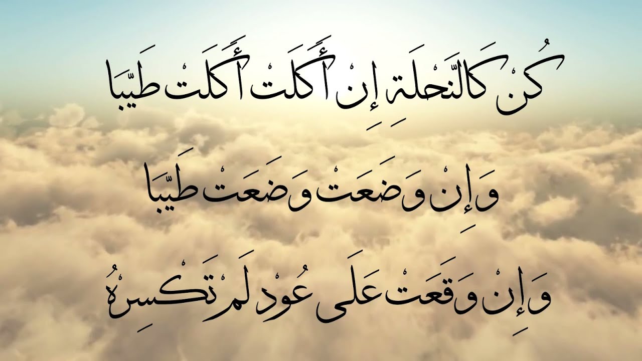 كُنْ كَالنَّحْلَةِ إِنْ أَكَلَتْ أَكلَتْ طَيِّباً وَ إِنْ وَضَعَتْ وَضَعْتَ طَيِّباً، وَ إِنْ وَقَعَتْ عَلى عُودٍ لَمْ تَكْسِرْهُ .