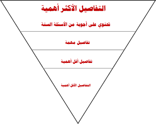 الهرم المقلوب: قالب للكتابة الصحفية اساسه صياغة البناء الفني للخبر او الموضوع الصحفي في صورة هرم مقلوب, حيث تتدرج المعلومات فيه طبقاً لدرجة اهميتها بشكل تنازلي يبدأ بالأهم فالمهم فألاقل اهمية.