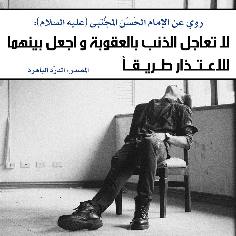 الإمام الحَسَن المُجْتبى ( عليه السلام ) أنهُ قَالَ : لا تُعاجِلِ الذَّنبَ بِالعُقوبَةِ ، و اجعَل بَينَهُما لِلاعتِذارِ طَريقا .