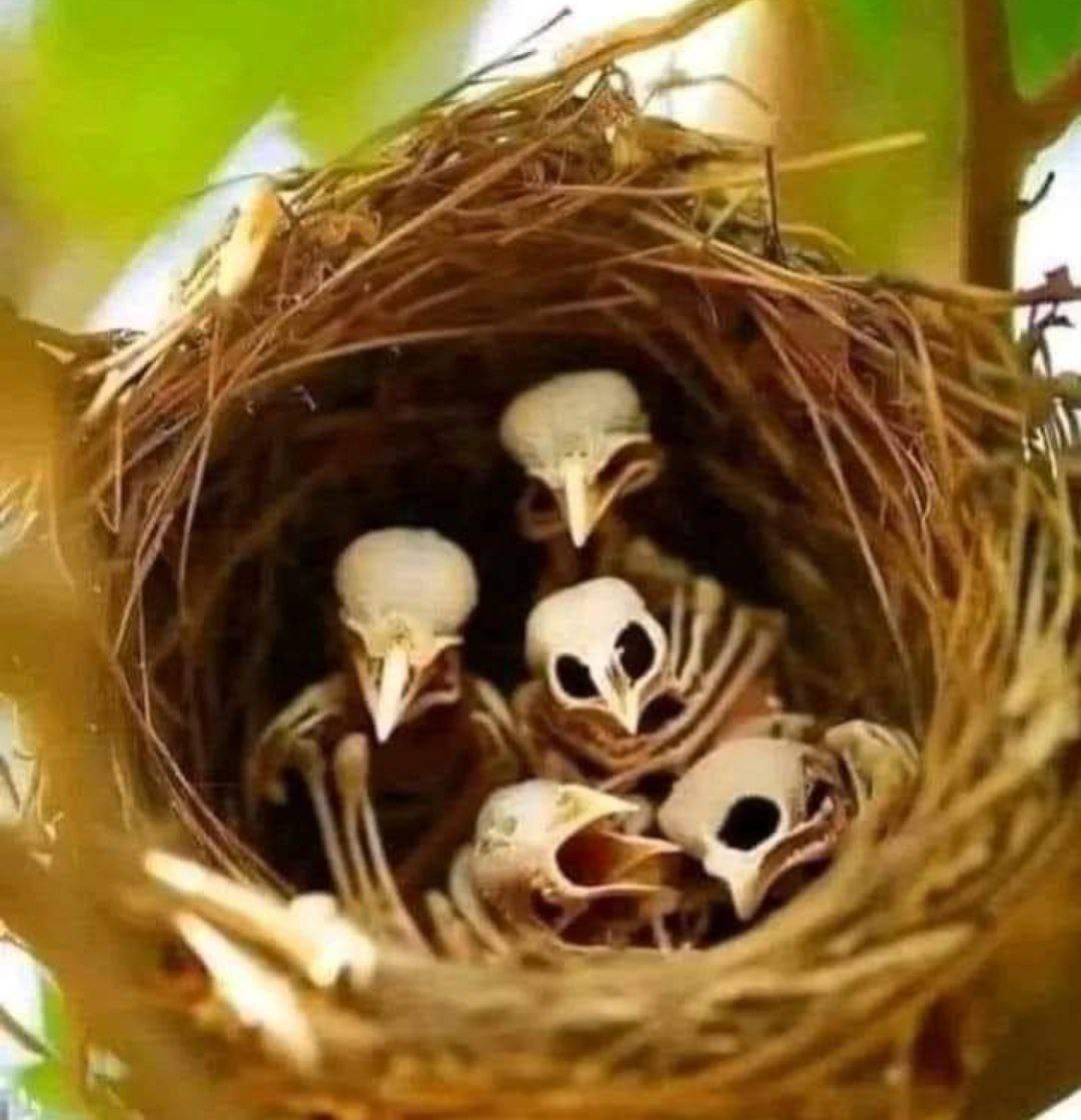 طيور ميته داخل عش ينتظرون امهم لتحضر لهم الطعام لكن يبدو ان الأم قد قتلت لسبب ما