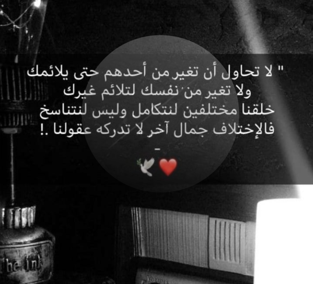 لا تحاول أن تغير من أحدهم حتى يلائمك ولا تغير من نفسك لتلائم غيرك خلقنا مختلفين لنتكامل وليس لنتناسخ فالإختلاف جمال آخر لا تدركه عقولنا .. !