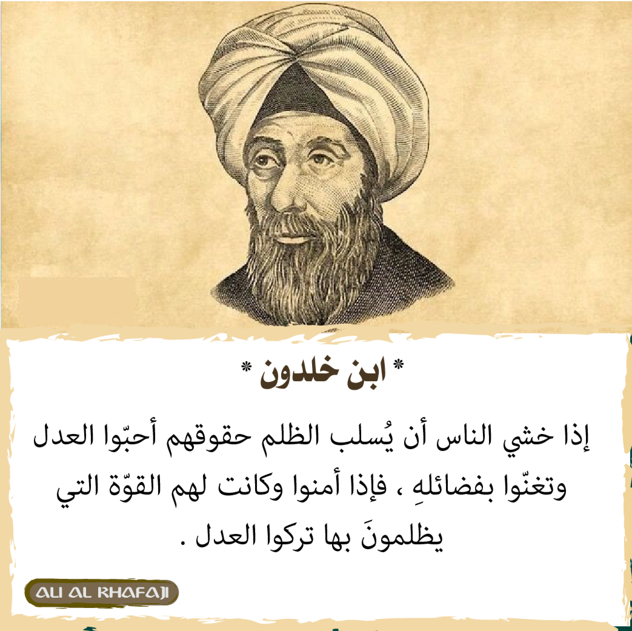 يقول ابن خلدون : إذا خشي الناس أن يُسلب الظلم حقوقهم أحبّوا العدل